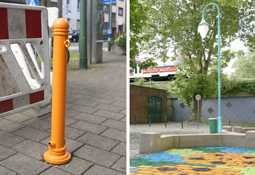 Poller und Laterne sind jetzt bunt. Foto: Anika Neuß